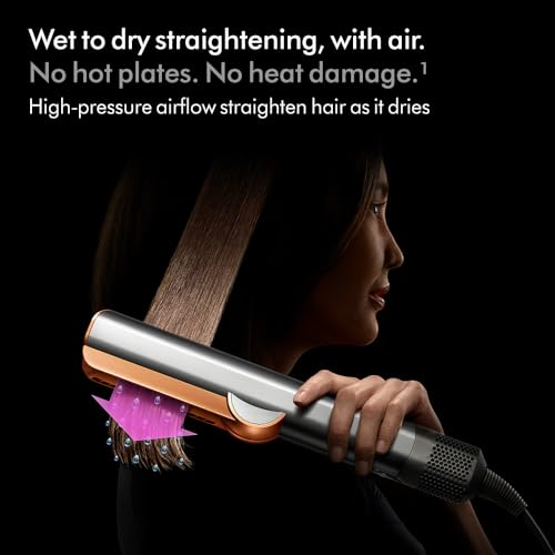Experience effortless styling with the Dyson Airstrait Straightener, designed to transition your hair from wet to dry while delivering a sleek, natural finish. Its powerful airflow simplifies your routine and ensures a polished look every time.